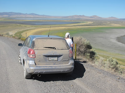 Another dusty stretch of road took us to Hart Mountain National Antelope Refuge where we saw herds of antelopes, where some of the pronghorns even crossed the road in front of the car. We spent the night at another hot springs, on federal land, where the camping was primitive but the hot mineral water a total treat. At night the temperatures plunged to 2ºC. We still managed to stay warm, wearing triple layers of clothing. The next morning Ellie and i left the main road, driving over a dreadful rutted and rocky track to nearby Petroglyph Lake. There we spotted more pronghorn antelopes and viewed aboriginal images scratch on the surfaces of basaltic rock. Once back on the main road again, we descended to the Warner Valley and back to civilization. In Lakeview we did laundry and had a restaurant lunch, after a few days of really roughing it.