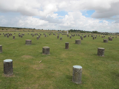 Without too, too much difficulty we did find the site. Basically, it is a two or three acre, fenced field, (sheep graze quite contentedly in adjoining pasture land), with stubby concrete posts set into the ground, more or less, in the middle of it. The plaque near the entrance gate informs one that the site dates from sometime between the Neolithic/Bronze Ages. Archaelogical investigation, carbon dating, etc., has lead researchers to understand that timber was used instead of the stone monoliths which characterize Stonehenge. The concrete “posts” allow one to visualize, more or less, the three concentric circles which form the site. Apparently these were arranged in a similar fashion to the placement at Stonehenge, aligned with the movement of the sun and other planetary motions. Having had more than enough difficulty finding this spot, with the aid of a printed map, a so-so GPS and a questionable, surly Navigator, I was in no mood to start taxing my already befuddled brain with far more complicated astronomical questions so snapped a few pictures of the sad concrete stumps and we returned to the car.